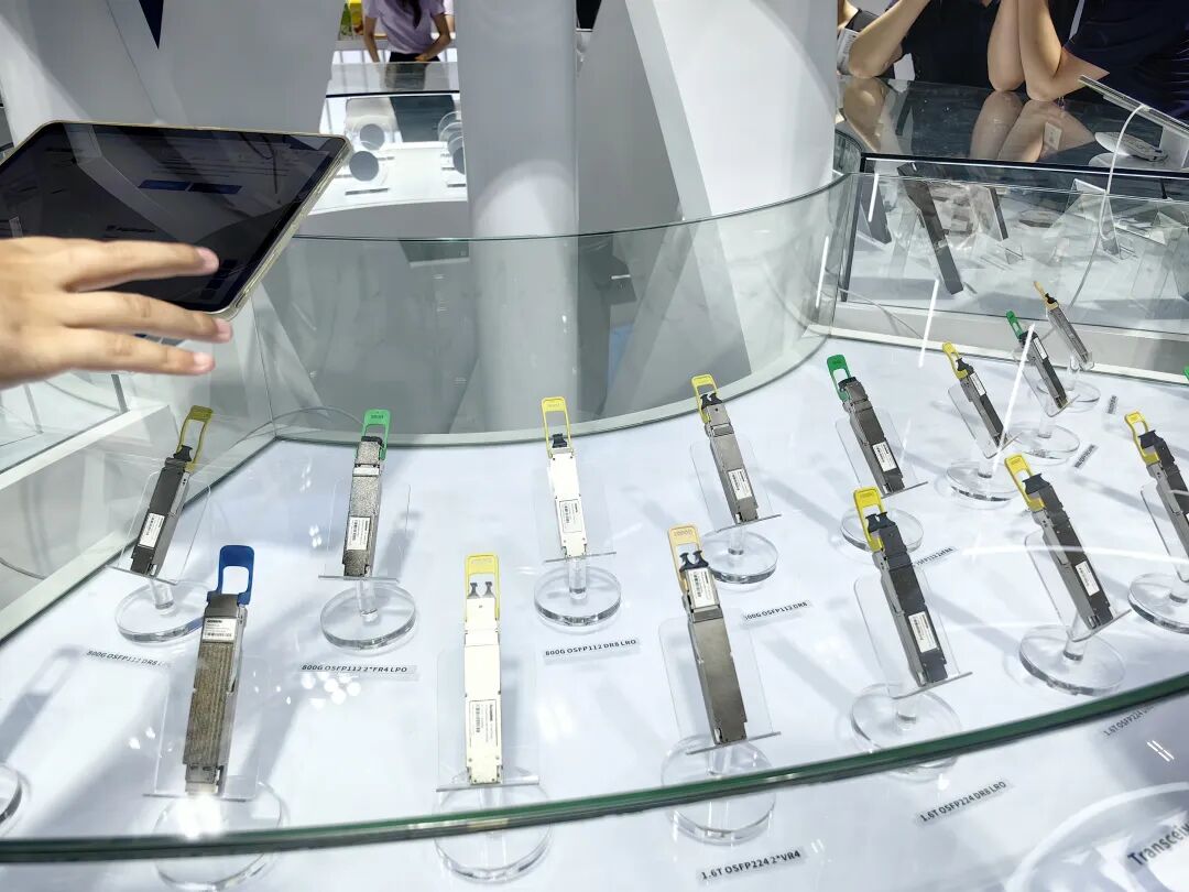 光模块等成为本届光博会关注焦点。作为当前光通信领域高端主流技术,1.6T 光模块代表了光模块行业的前沿水平,应用于面向超大型数据中心、AI算力集群、超算中心等对带宽需求极高的场景。记者在现场注意到,国内外厂商都竞相展示各自光模块全谱系产品,400G/800G光模块仍为当前出货主力,1.6T光模块也开始有部分出货。