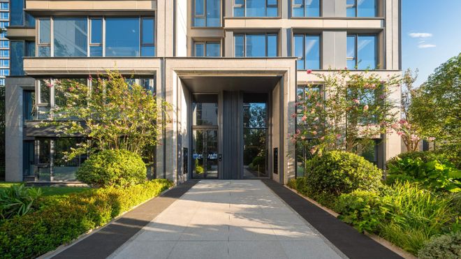 ·在归家动线的打造上,从社区入口全冠移植、成本高昂的两棵尊贵罗汉松,到面宽超30米、臻选Prada绿天然大理石的高奢社区门庭,名贵树种搭配奢石景墙,兑现生活的显赫归仪。